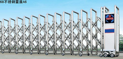 ◆不锈钢伸缩门活动部位特点:伸缩门的每个活动部位环节均采用不锈钢管,轴,轴瓦不锈钢螺母,尼龙衬垫组装,组装时每个环节点加注高级润滑油无噪音伸缩自如,100万次不散架。伸缩门走轮采用尼龙制作,50万次无明显磨损。